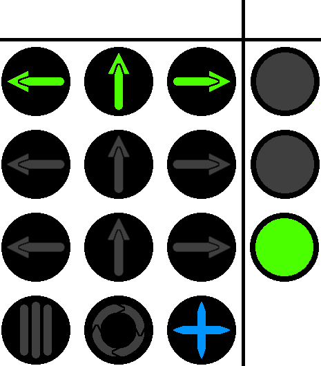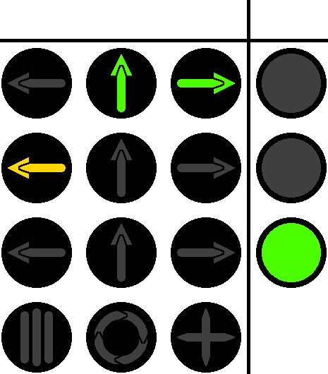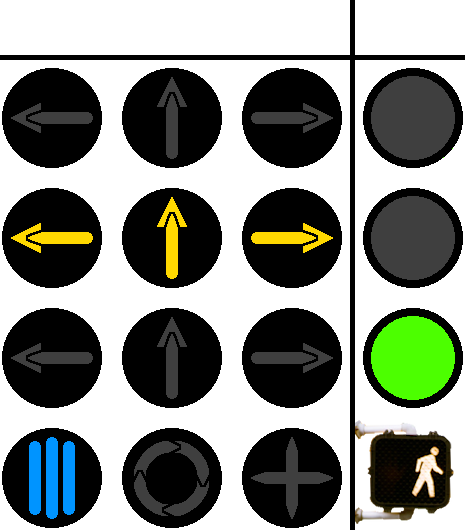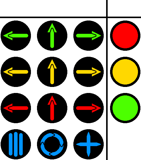 In further diagrams, a light will be on if it is colored. If it's off, then it will be dark gray.